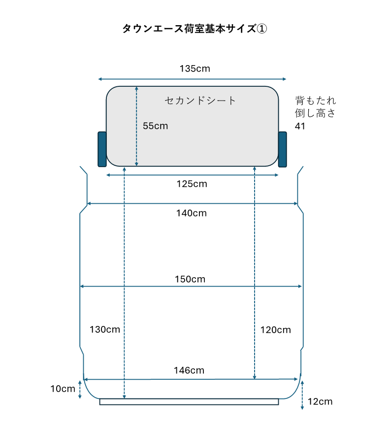 - 全幅:最大で150cm。タウンエースはコンパクトな外見に似合わず、実は広大な横幅を持っています。