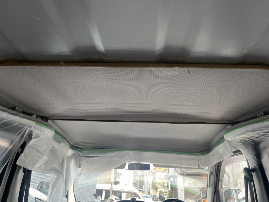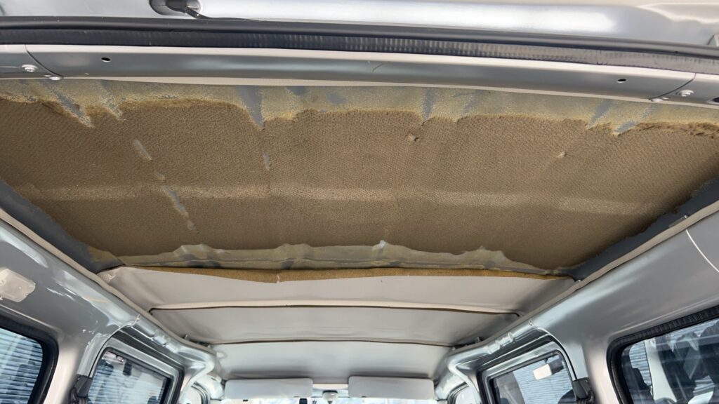 これは本当に地獄でした。僕たちのタウンエース(S402M)の天井の断熱材は、強力な接着剤で全面に糊付けされたスポンジシートでした。