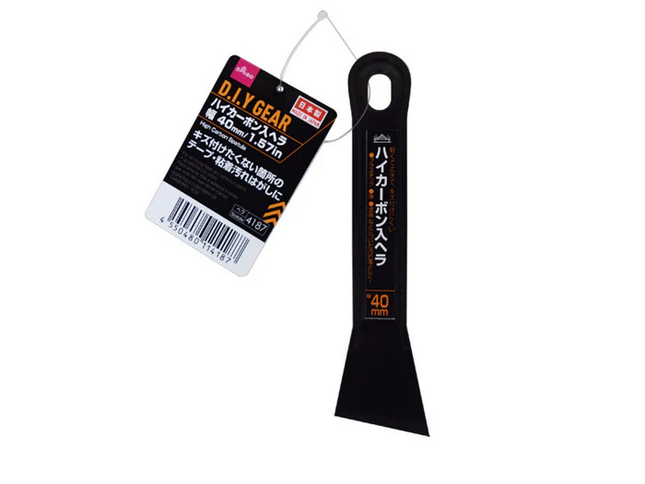 正直、なんでもよいと思いますが意外にもダイソーは色々な種類のヘラを置いてました。一応金属のヘラも買ってみましたが使いにくくこっちのカーボンヘラの方が良かったです。