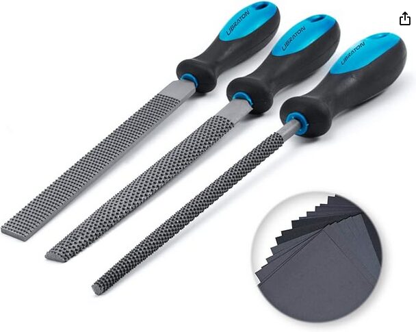 目の粗さが異なる複数のヤスリのセット。木材の角を丸めたり、細かなサイズ調整をしたりする際にかなり使います。